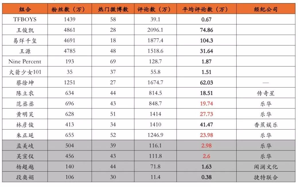 从交际媒体上面来看,据熊猫本钱的核算,男人偶像集体的微博热度是女子偶像集体的10-30倍。女子集体中,《发明101》中孟美岐地点的乐华文娱的偶像集体体现抢眼。