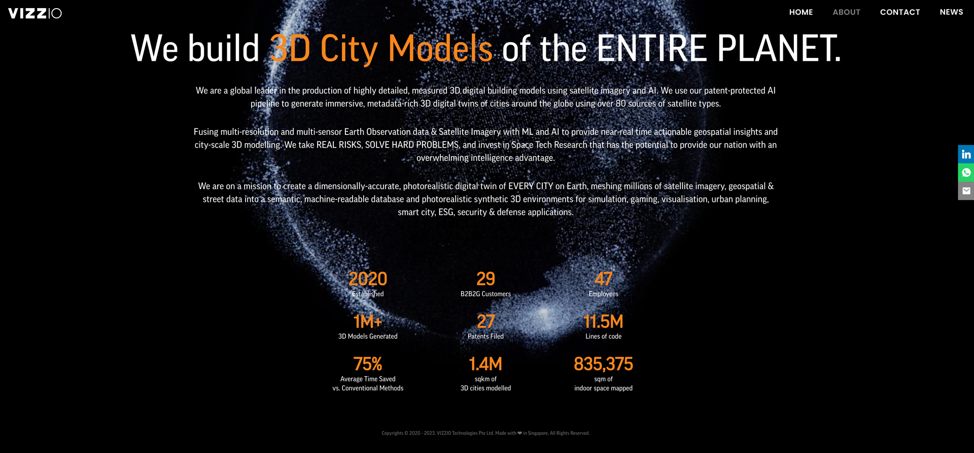 依据VIZZIO的官网介绍,自2020年建立以来,VIZZIO现已制作了140万平方公里的3D城市建模以及超83.5万平方米的室内面积。此外,在商场表现方面,据多方报导,VIZZIO也同至少两家国家级的亚洲国防组织展开了协作,而且官网信息显现其B2B2G客户总数达29家。